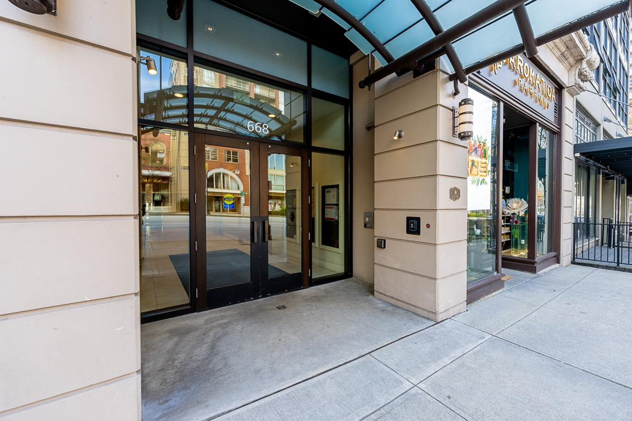 Trapp + Holbrook at 668 Columbia Street is a striking mixed-use high-rise that seamlessly blends contemporary design with the preserved character of New Westminster’s historic downtown core. Completed in 2015 by The Salient Group and designed by IBI/HB Architects, this 20-storey concrete tower rises above a carefully restored heritage streetscape, creating one of the city’s most architecturally distinctive addresses.