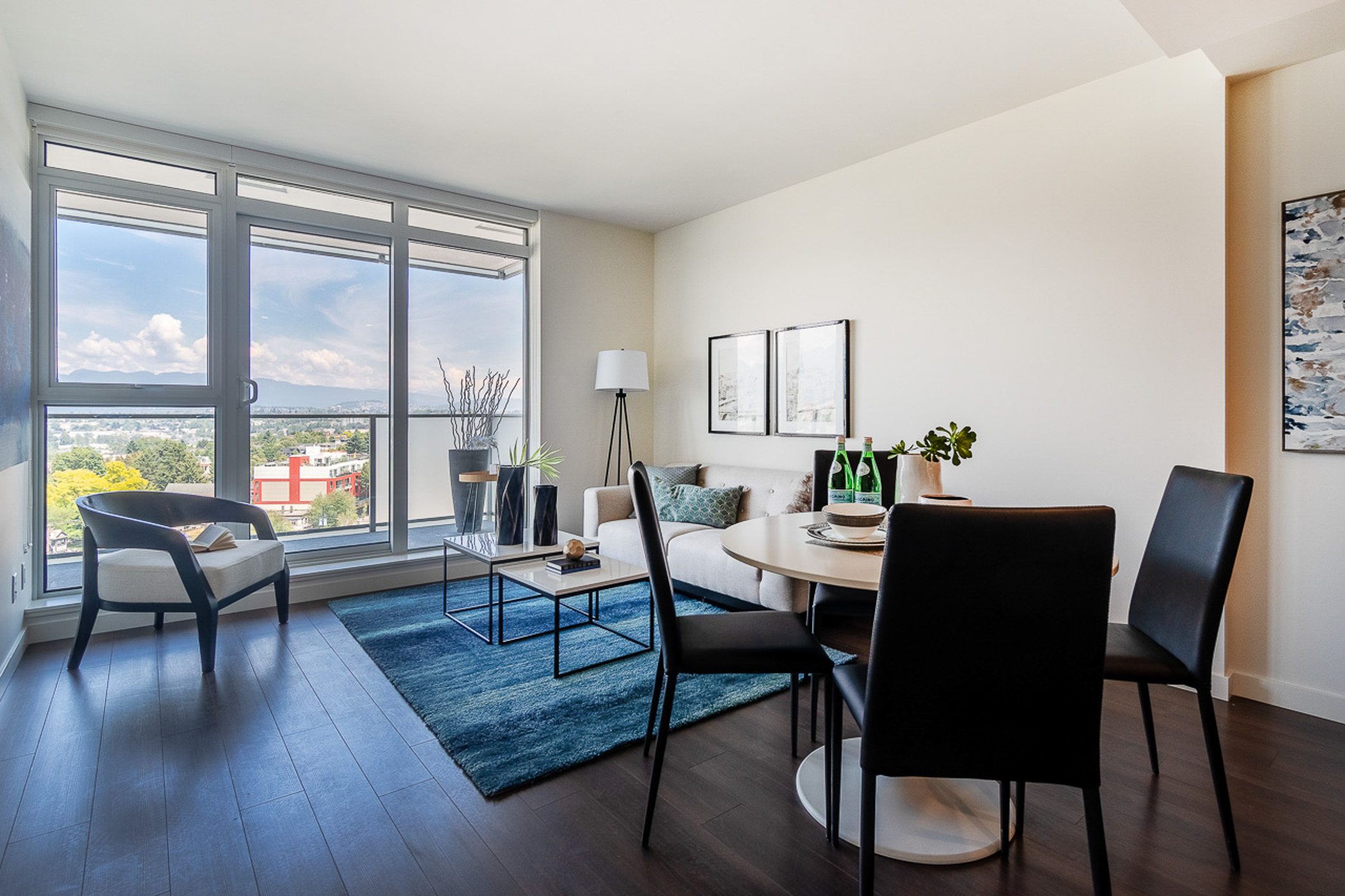Recently completed and perched over Mount Pleasant sits the Independent by Rize Developments. This 1 bedroom unit features floor to ceiling windows letting in plentiful natural light and stunning views over the city. High end finishings include wood-laminate flooring, polished engineered stone surfaces and custom Italian cabinetry. Building amenities consist of a 1,200 sq ft fitness facility, a community lounge, workroom, and secure bike storage rooms for over 300 bikes. Nestled between the podium and tower buildings is a 20,000 sq ft ‘backyard’ which includes something for everyone including raised garden beds, barbecues, hammocks, loungers, and more. From killer amenities to a vibrant city views The Independent is a first class building in a stellar neighbourhood.