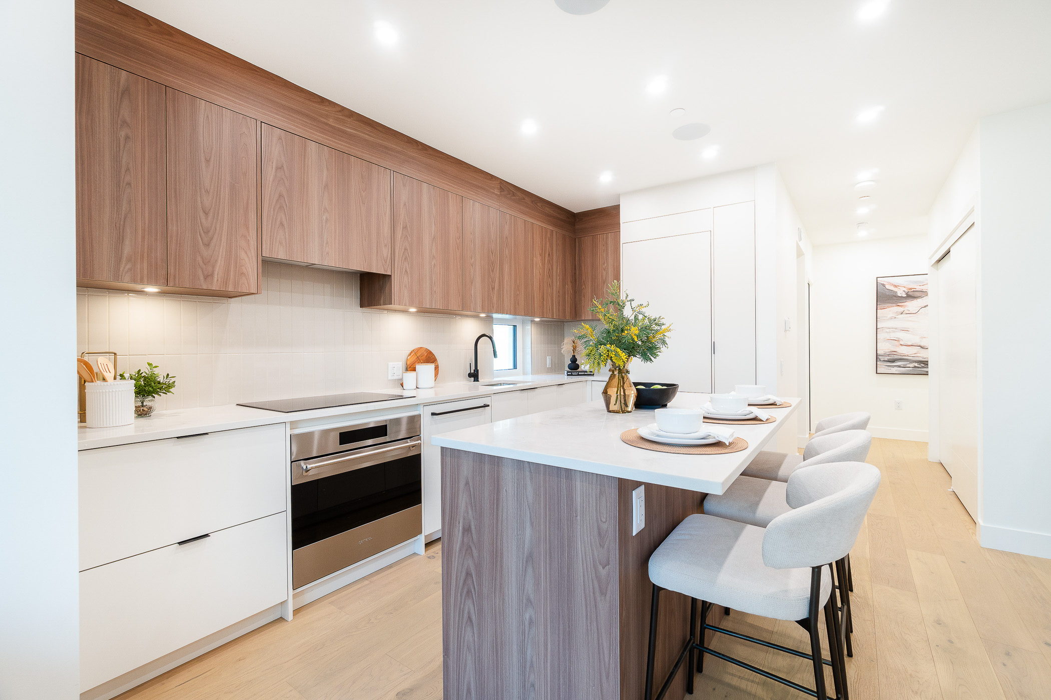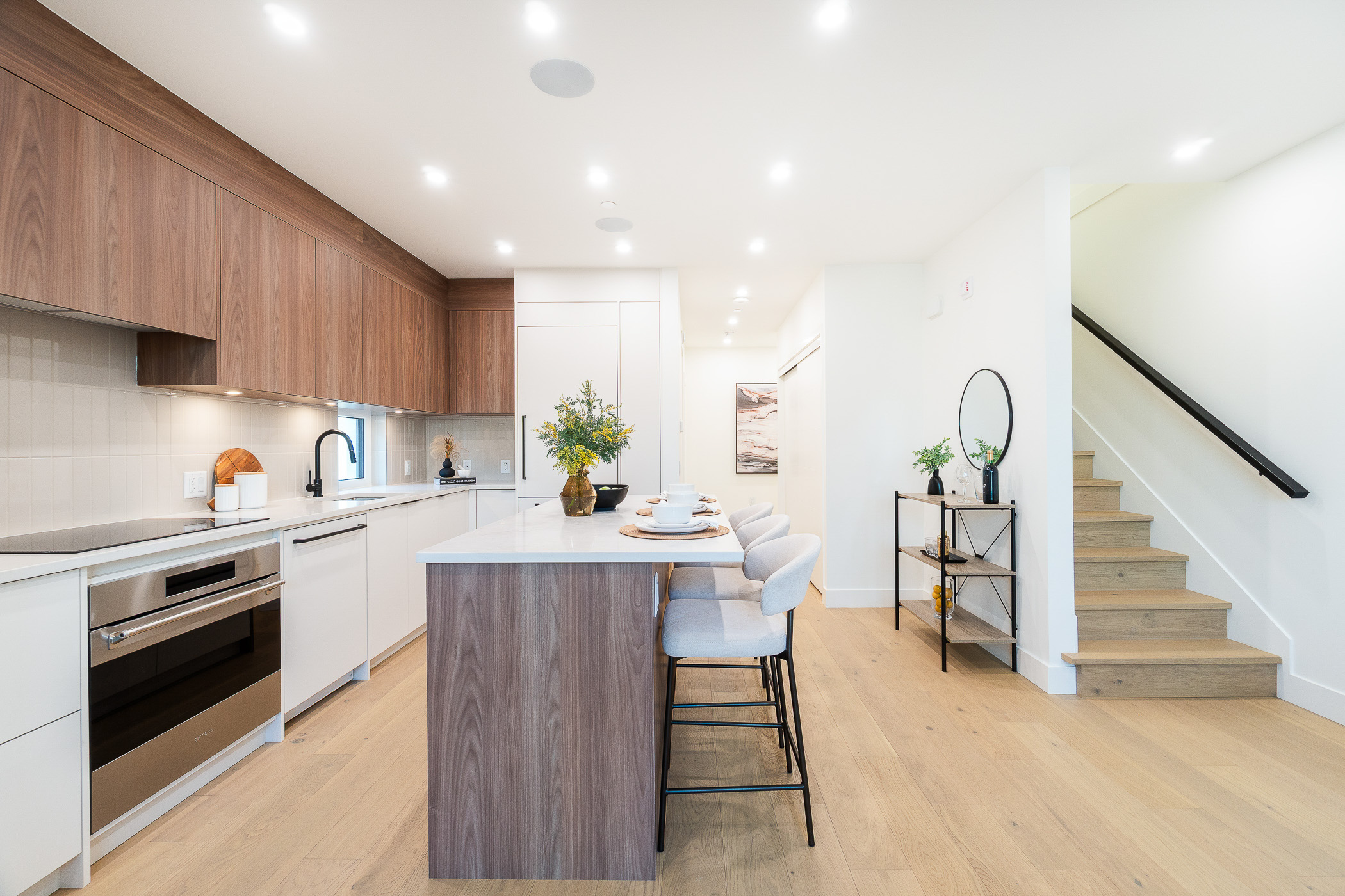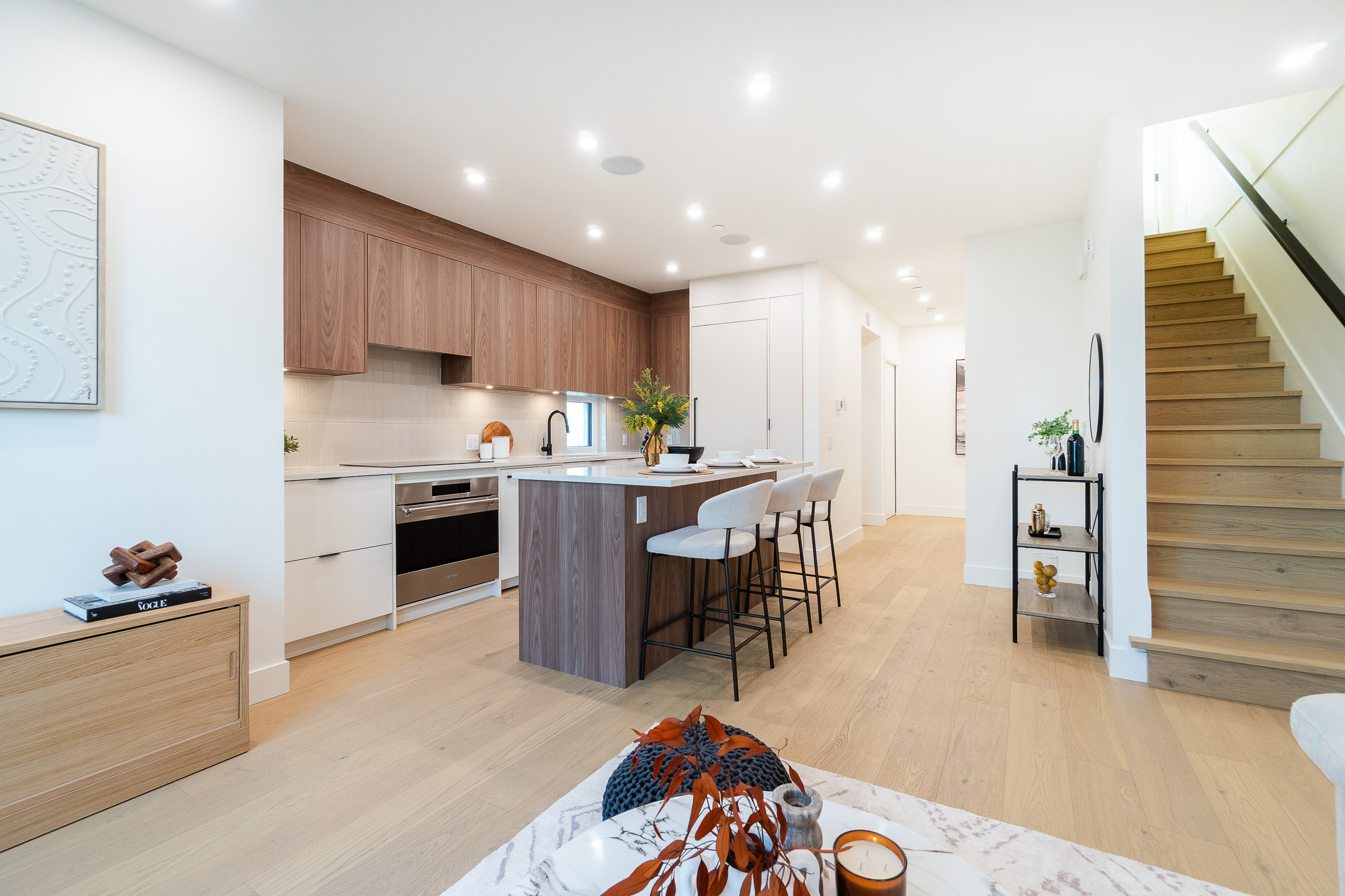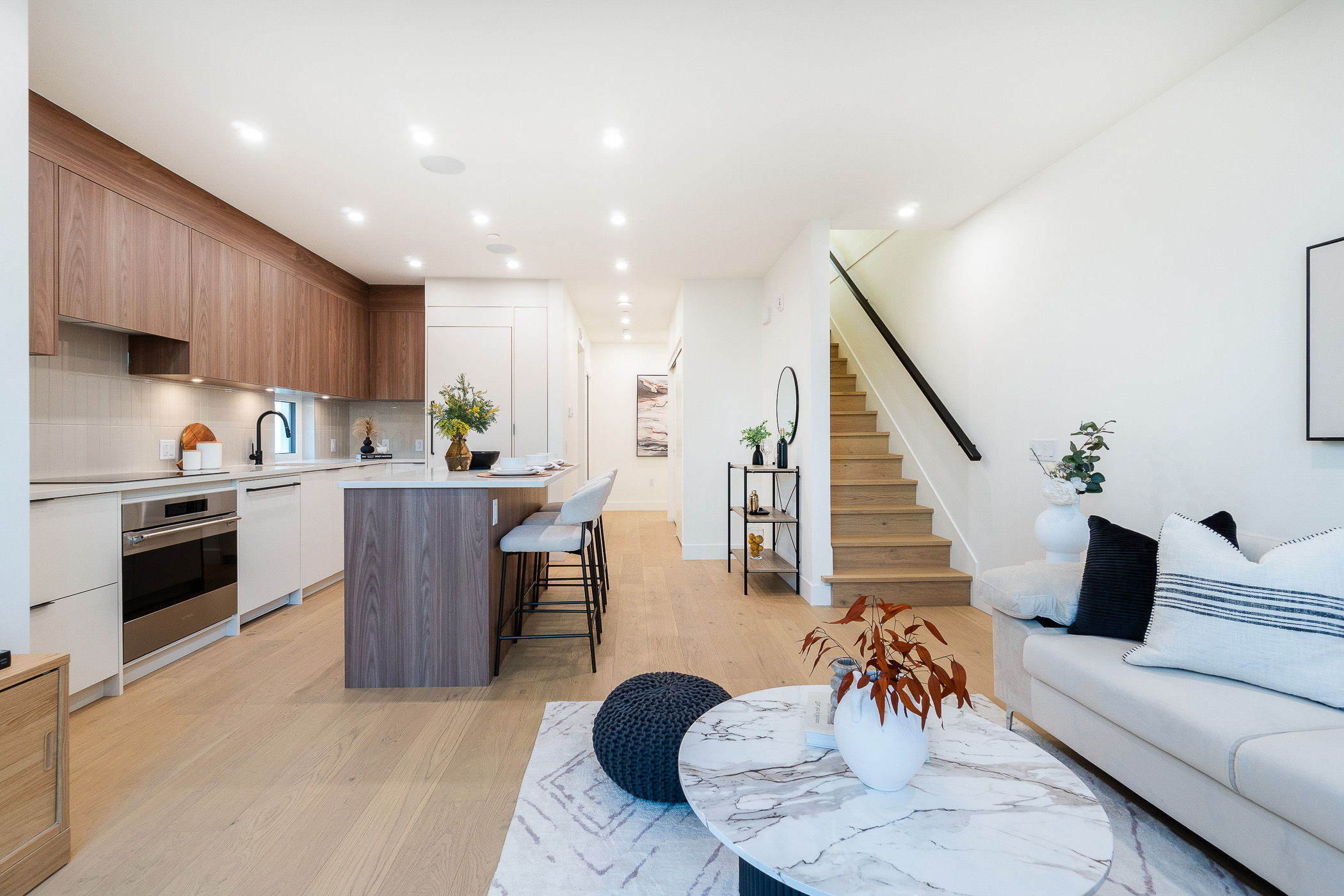 Welcome to Coral – Vibrant, Intelligent, and Unique. A one-of-a-kind, boutique community just steps from Commercial Drive, designed by award-winning Architect MA+HG and Interior Designer Evoke International. This expansive 3 bedroom + den home is highlighted by its private rooftop deck, complete with gas hookups for fire and BBQ, integrated speakers, and TV mount for the ultimate entertaining experience, gardening, or unwinding under the sky. The open main level is anchored by a chef-inspired kitchen featuring Italian-made SMEG appliances, quartz countertops and custom high-end millwork. Radiant in-floor heating, air conditioning, triple pane windows, superior insulation and hardwood floors deliver exceptional comfort and efficiency while well-separated bedrooms and a flexible den offer space to grow, work, or host. Surrounded by cafés, markets, parks and transit, Coral offers East Van living at its finest – architecturally distinctive, boutique in scale, and set on a quiet, tree-lined street energized by the Drive, voted one of the “coolest neighbourhoods in the world”.