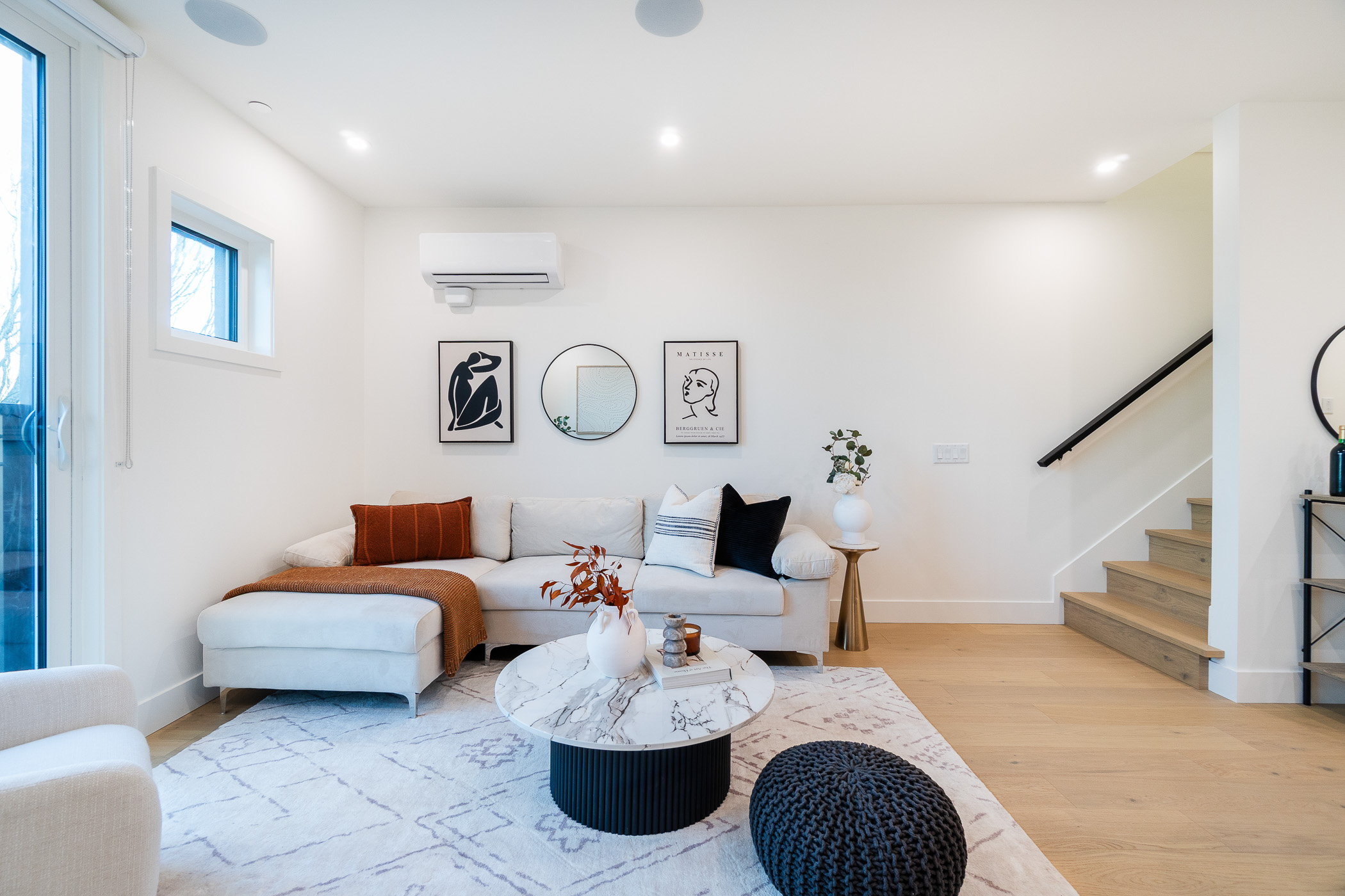 Welcome to Coral – Vibrant, Intelligent, and Unique. A one-of-a-kind, boutique community just steps from Commercial Drive, designed by award-winning Architect MA+HG and Interior Designer Evoke International. This expansive 3 bedroom + den home is highlighted by its private rooftop deck, complete with gas hookups for fire and BBQ, integrated speakers, and TV mount for the ultimate entertaining experience, gardening, or unwinding under the sky. The open main level is anchored by a chef-inspired kitchen featuring Italian-made SMEG appliances, quartz countertops and custom high-end millwork. Radiant in-floor heating, air conditioning, triple pane windows, superior insulation and hardwood floors deliver exceptional comfort and efficiency while well-separated bedrooms and a flexible den offer space to grow, work, or host. Surrounded by cafés, markets, parks and transit, Coral offers East Van living at its finest – architecturally distinctive, boutique in scale, and set on a quiet, tree-lined street energized by the Drive, voted one of the “coolest neighbourhoods in the world”.