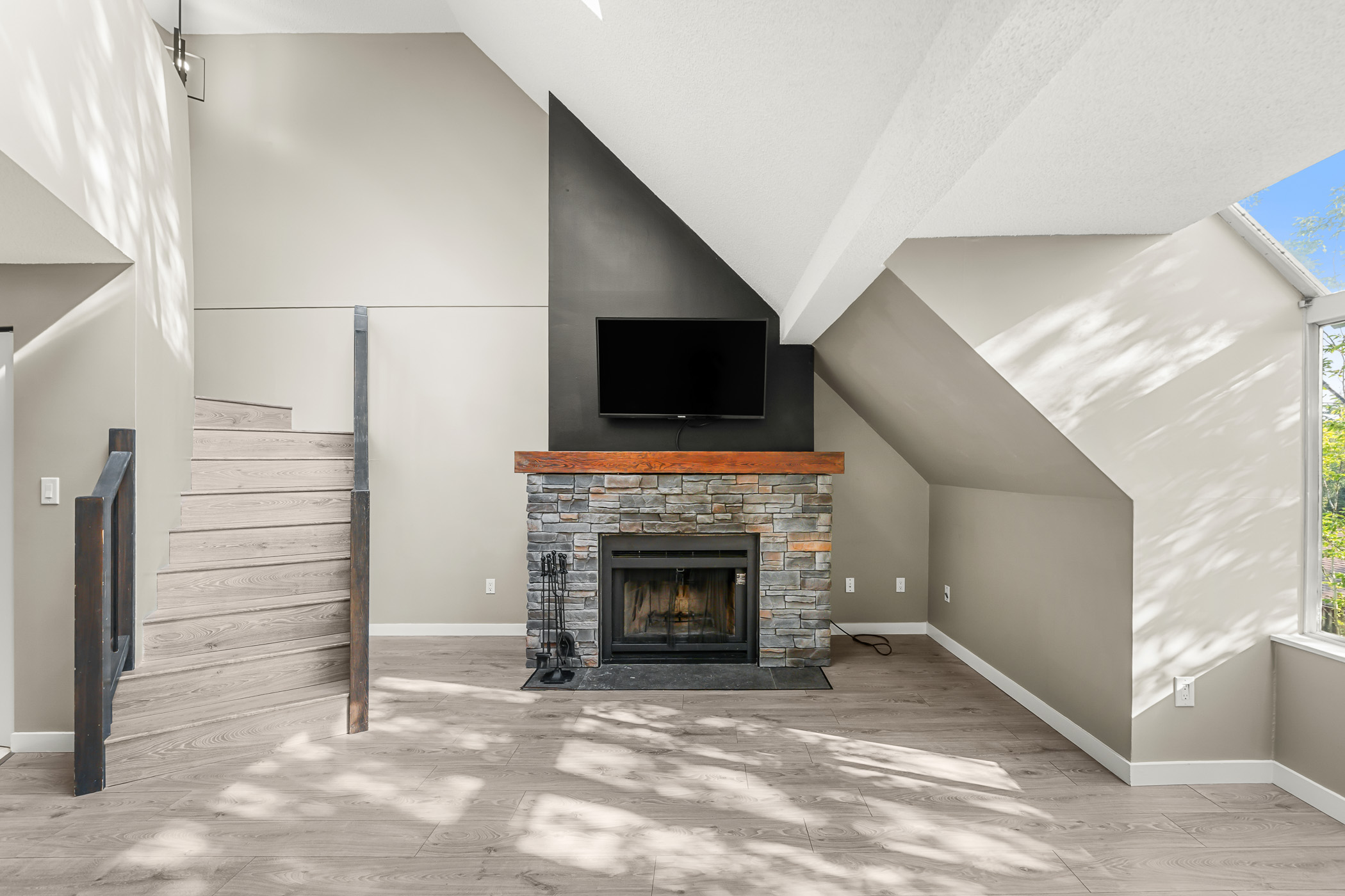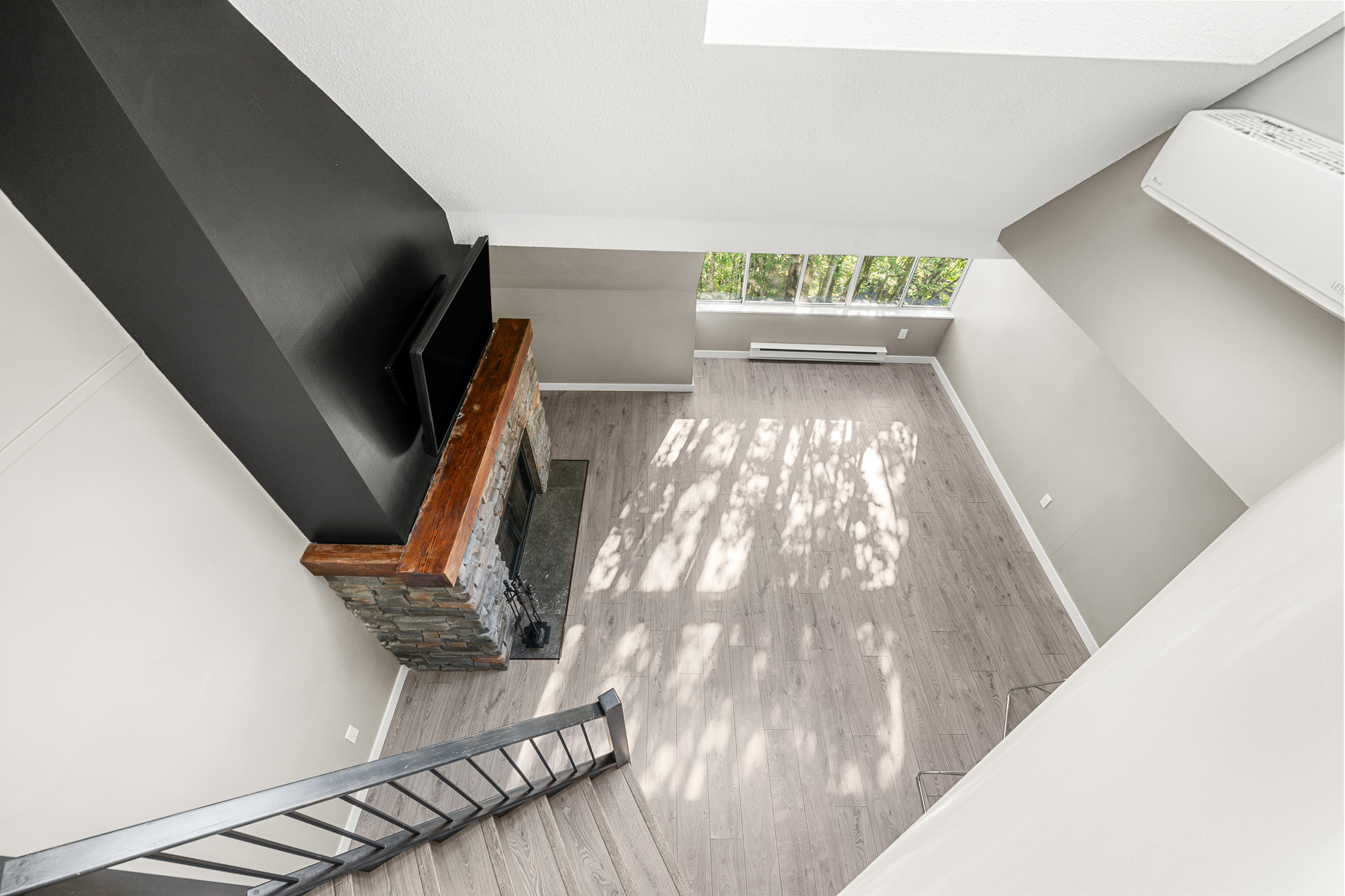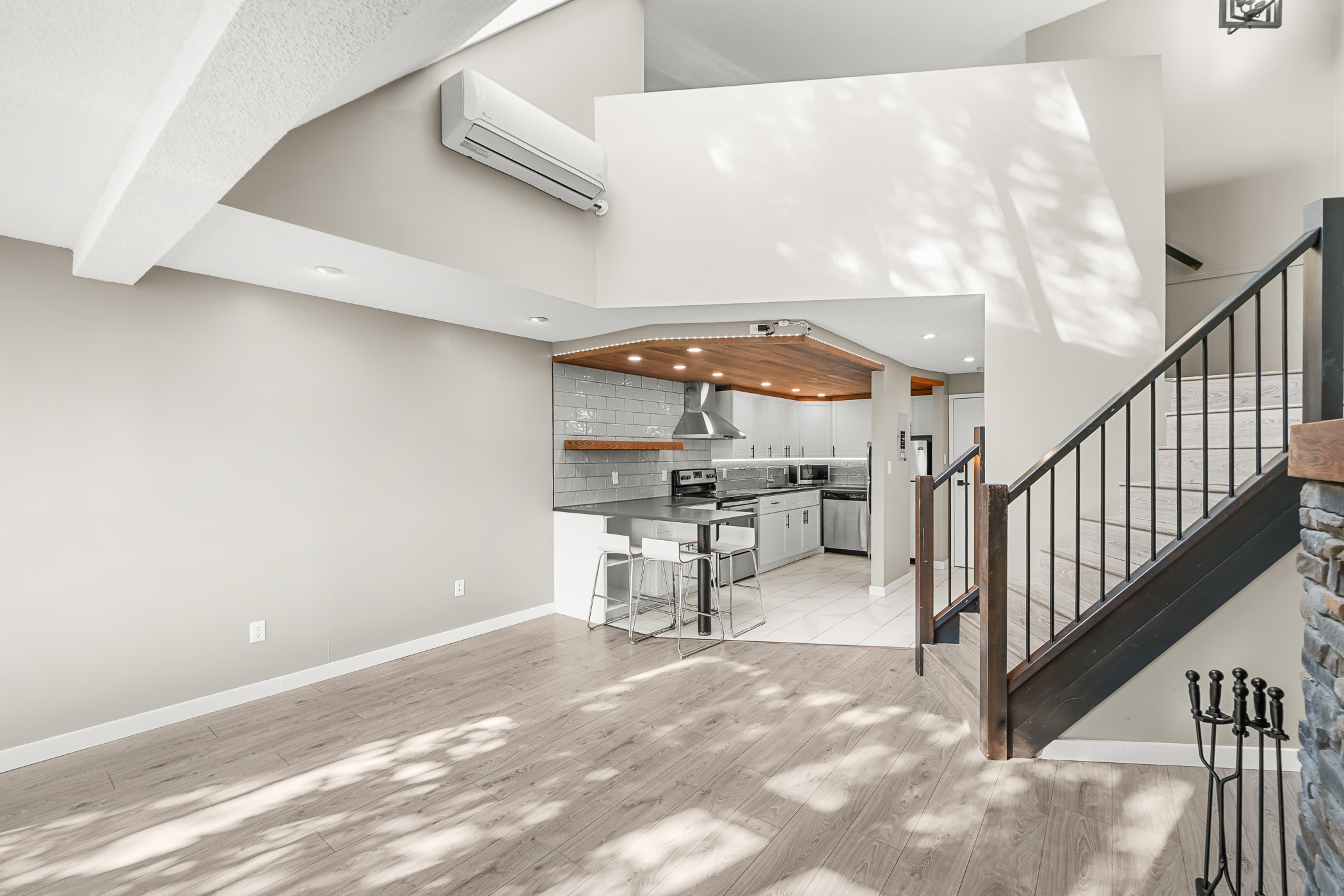Experience Soho living in the heart of Richmond with this one bedroom, two bathroom unique space. Impeccably renovated, this open floor plan loft in the heart of Richmond is a first time home buyers dream. Beautiful finishes include a gourmet chef’s kitchen complete with stainless steel appliances, shaker cabinets, subway backsplash, stone countertops, a gorgeous inlaid hardwood ceiling complete with pot lighting and tile flooring. The living area boasts soaring vaulted ceilings, a feature wood burning fireplace with stone accents, laminate flooring, pot lighting. The bathroom has also been completely renovated. The primary bedroom is an open loft with accent wall, electric fireplace, open closet design and an updated ensuite bathroom. This unit also comes with air conditioning, in suite laundry, in-suite storage, private rooftop patio off the primary bedroom and parking.