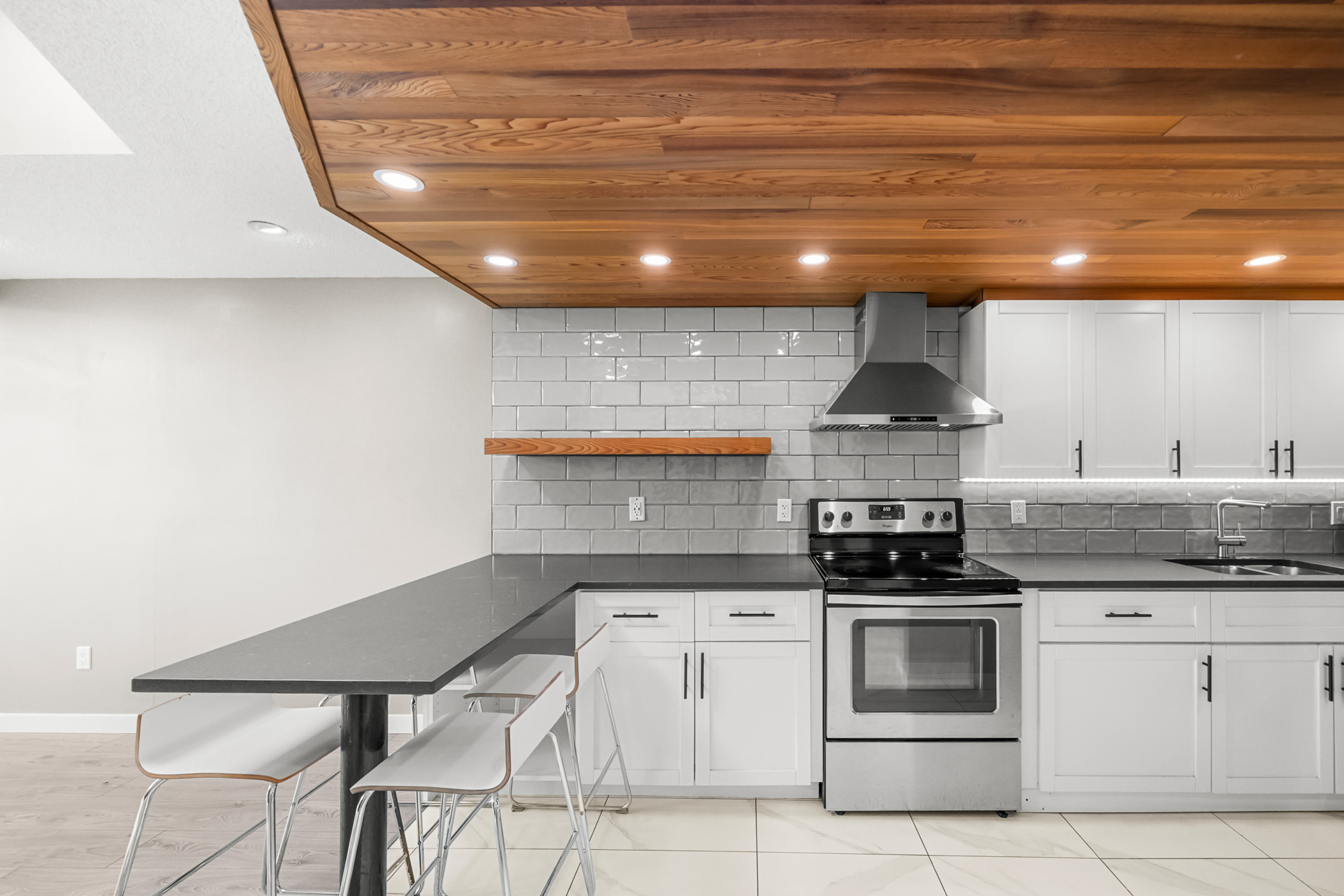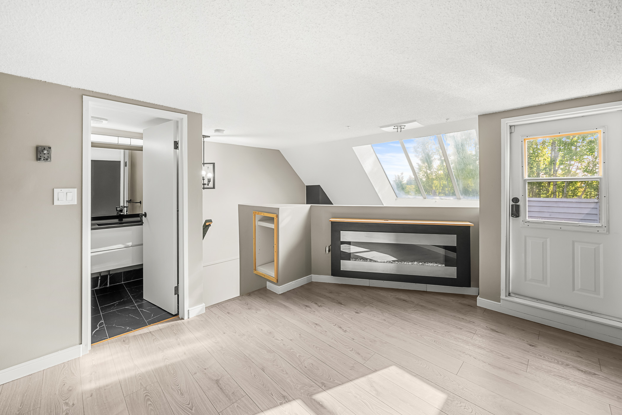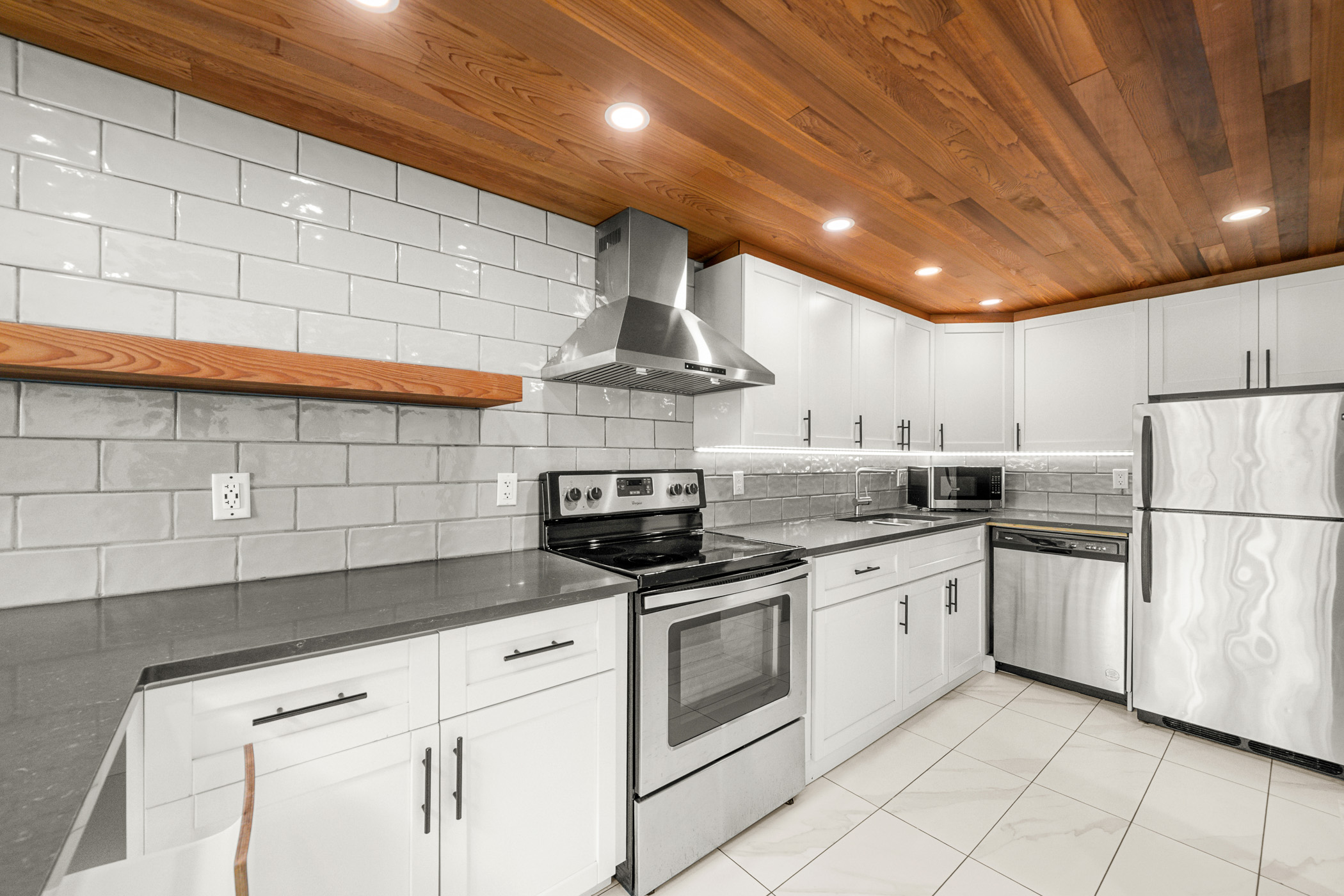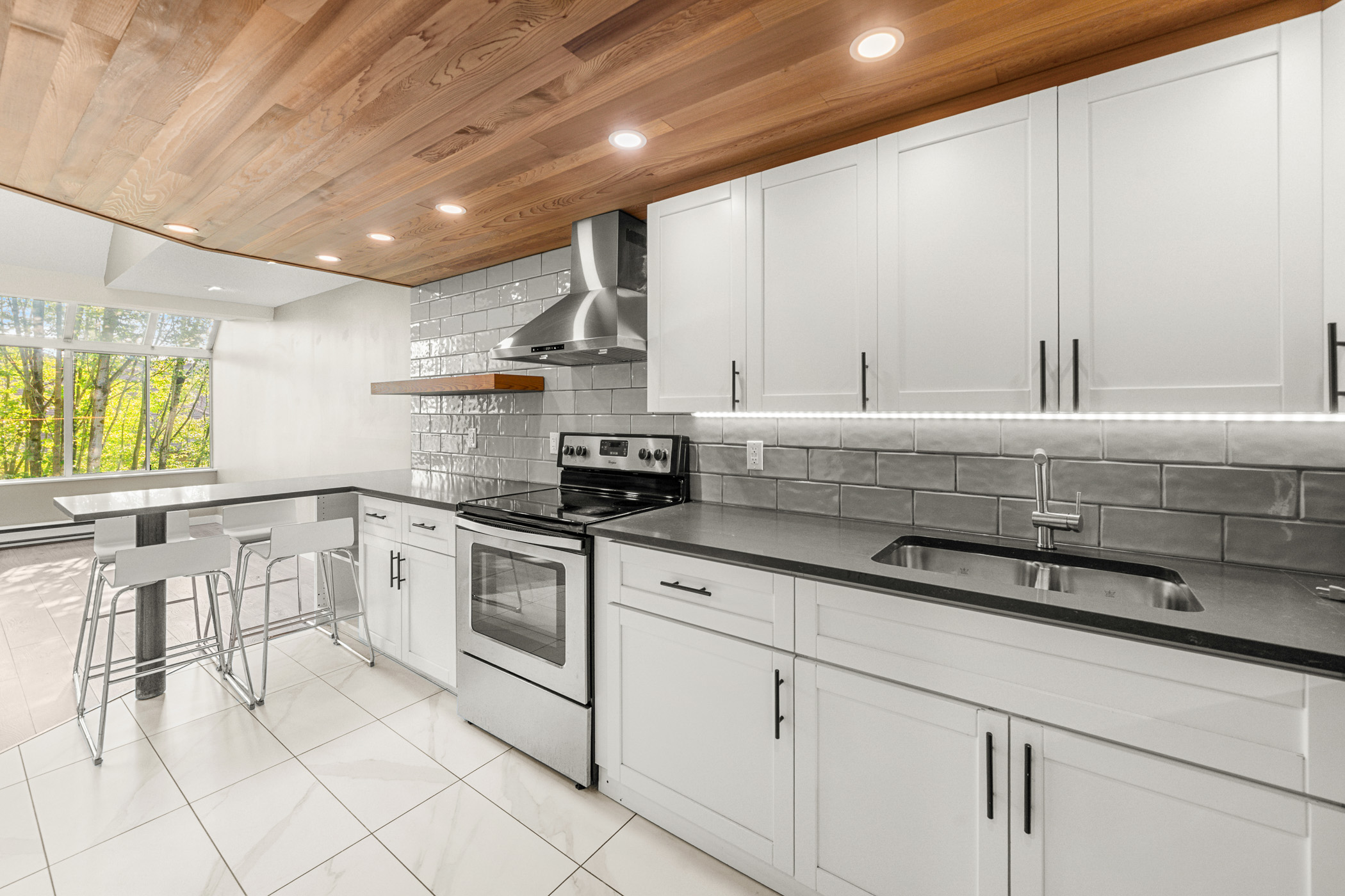 Experience Soho living in the heart of Richmond with this one bedroom, two bathroom unique space. Impeccably renovated, this open floor plan loft in the heart of Richmond is a first time home buyers dream. Beautiful finishes include a gourmet chef’s kitchen complete with stainless steel appliances, shaker cabinets, subway backsplash, stone countertops, a gorgeous inlaid hardwood ceiling complete with pot lighting and tile flooring. The living area boasts soaring vaulted ceilings, a feature wood burning fireplace with stone accents, laminate flooring, pot lighting. The bathroom has also been completely renovated. The primary bedroom is an open loft with accent wall, electric fireplace, open closet design and an updated ensuite bathroom. This unit also comes with air conditioning, in suite laundry, in-suite storage, private rooftop patio off the primary bedroom and parking.