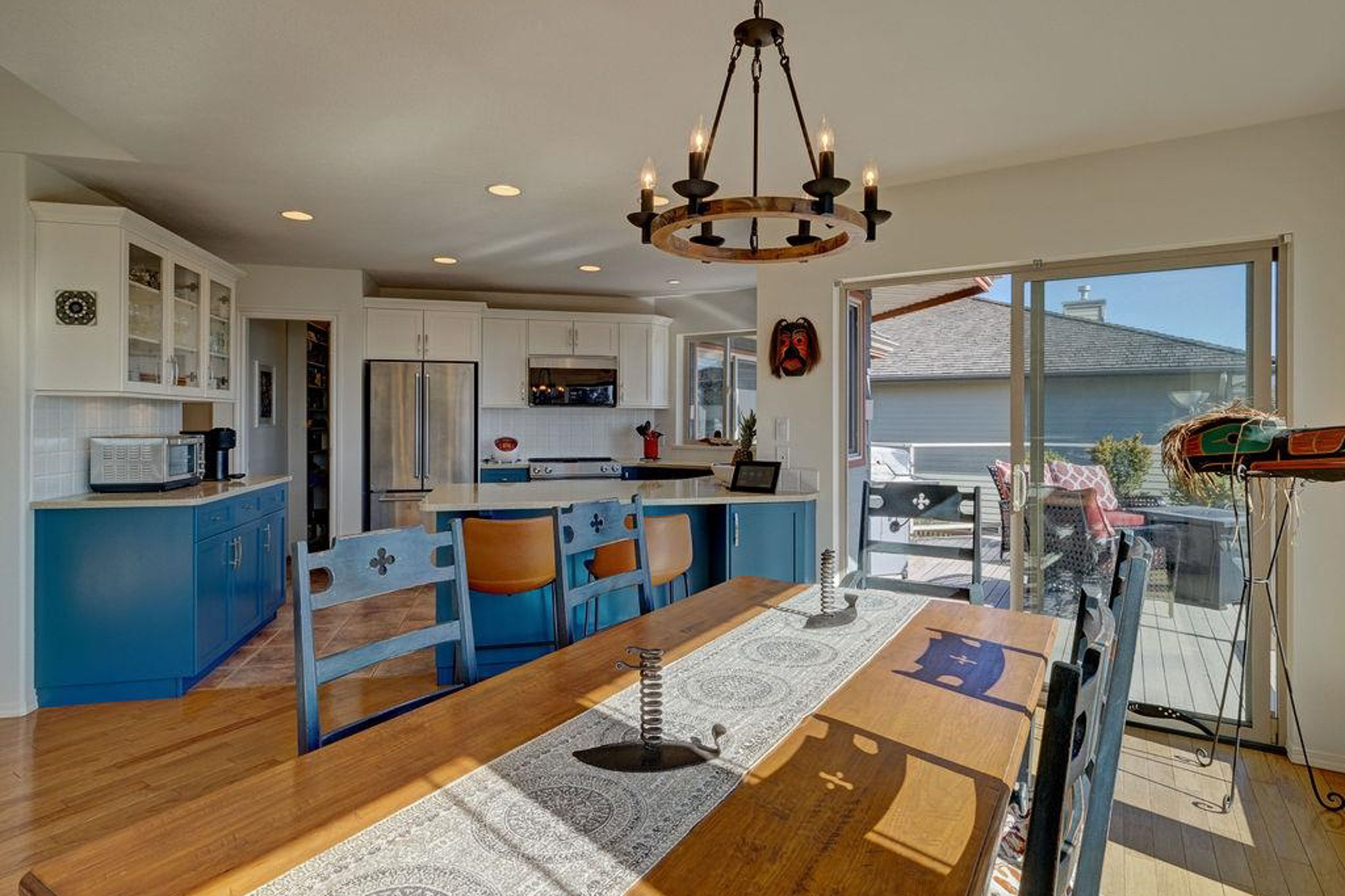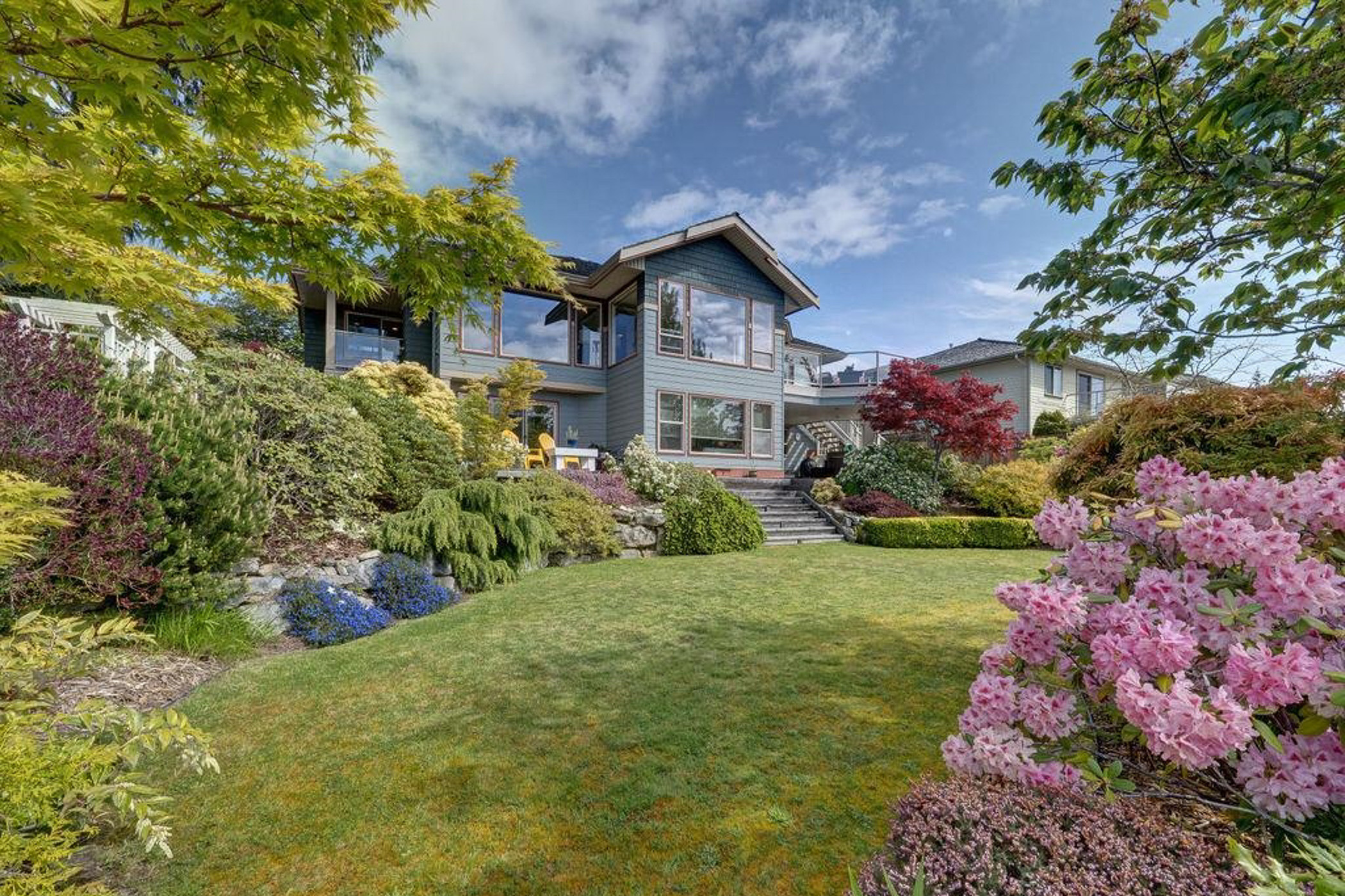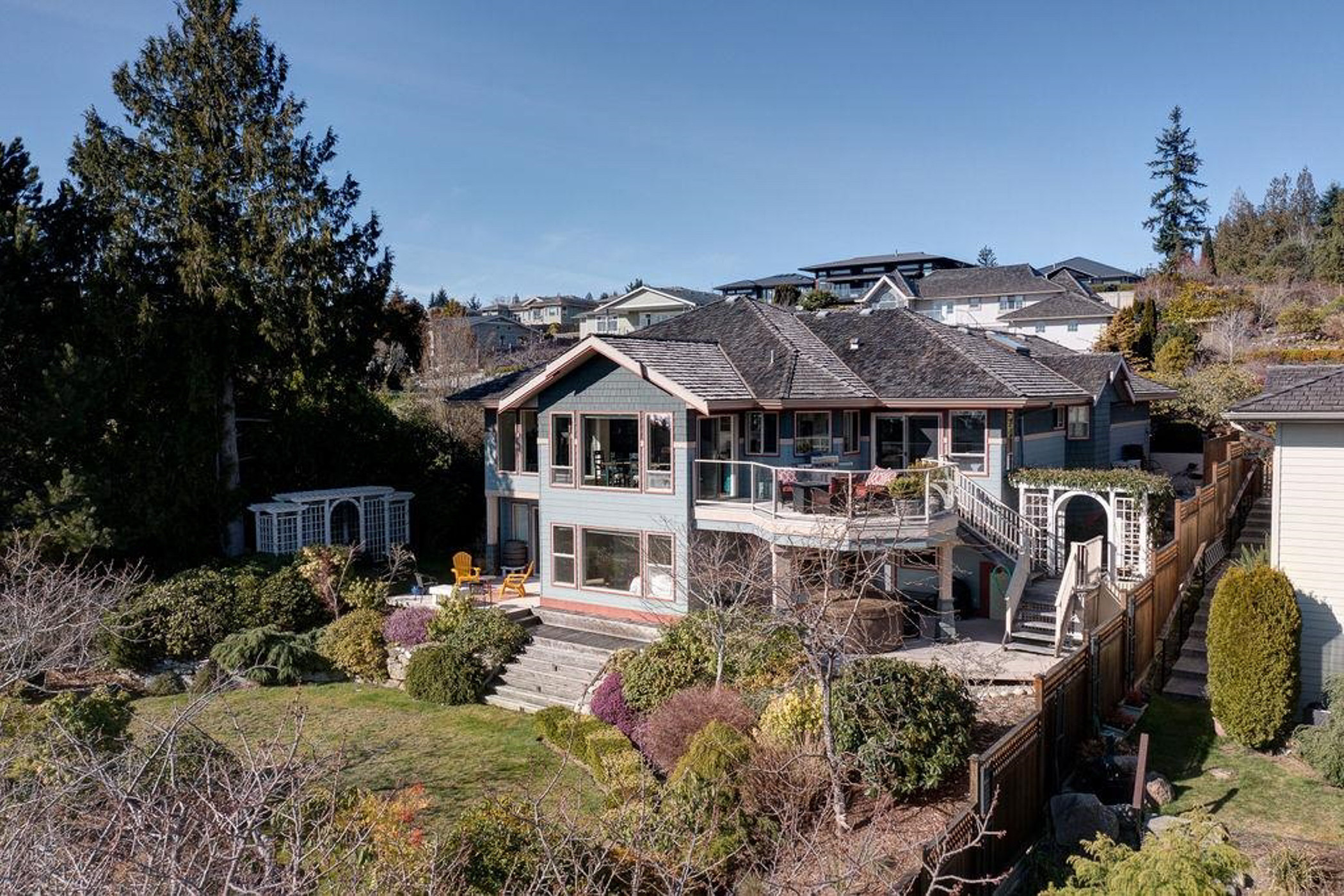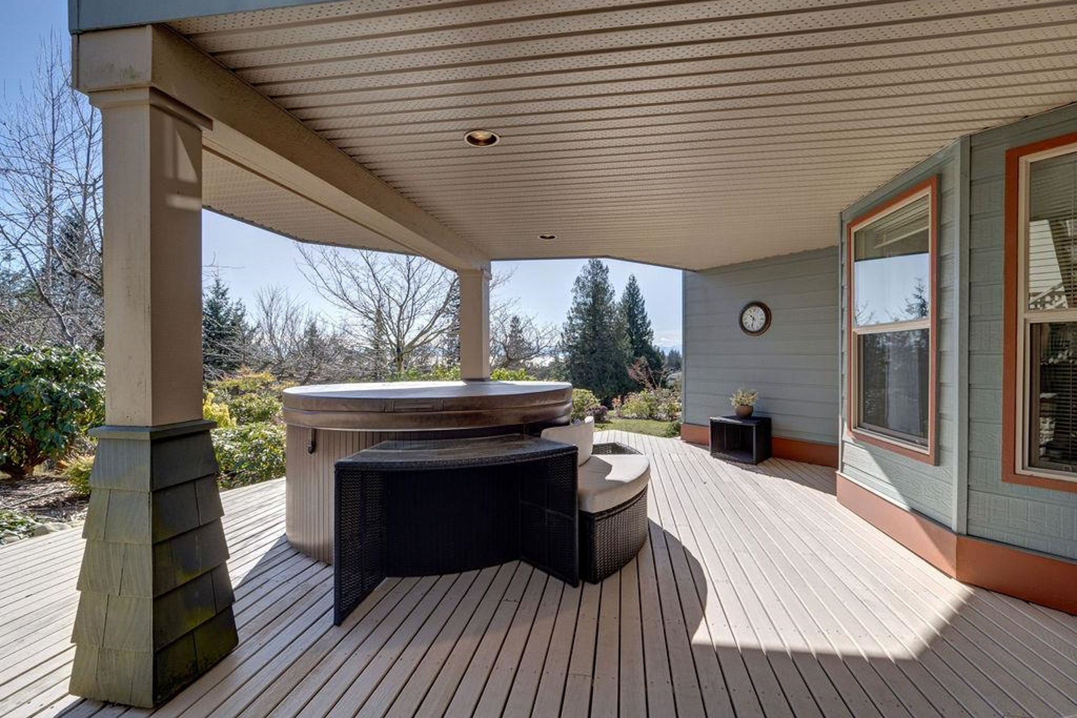 Enjoy views of the Trail Islands from this beautifully maintained home in West Sechelt. Thoughtfully designed for comfort and functionality, this home features single-level living with the primary suite, ocean view office, and main living areas all on one floor. Bathed in natural light, in-floor radiant heat, quality finishes, and a perfect balance of open and cozy spaces. The lower level offers versatility with a family room, three additional bedrooms, a second office, and ample storage. Step outside to a private patio with a hot tub, surrounded by mature landscaping and beautiful gardens. Recent updates, privacy, and the comfort of radiant heat make this home truly turnkey. Whether you’re seeking a place for family and friends, or a flexible live/work setup, this home is a must-see.