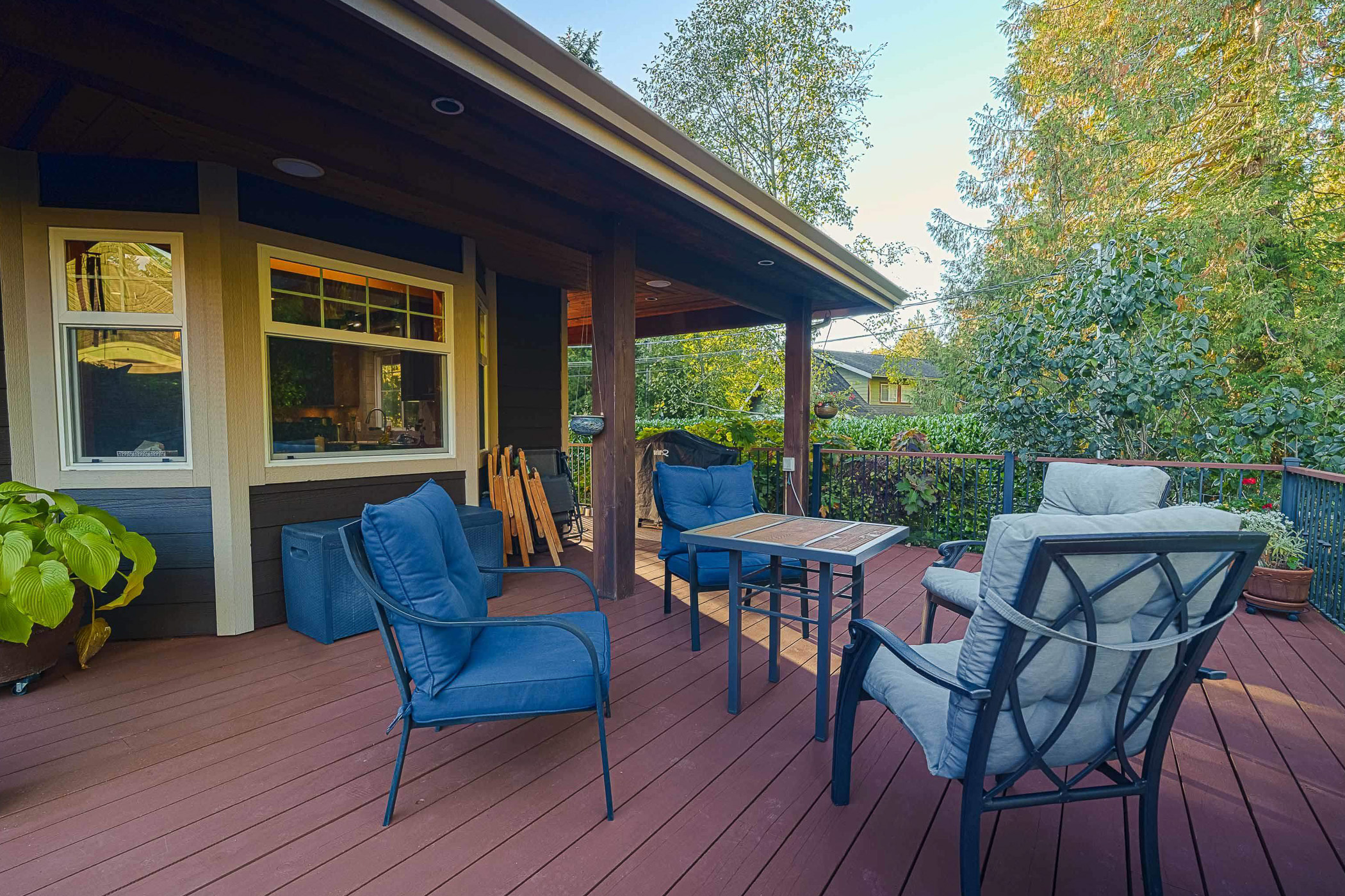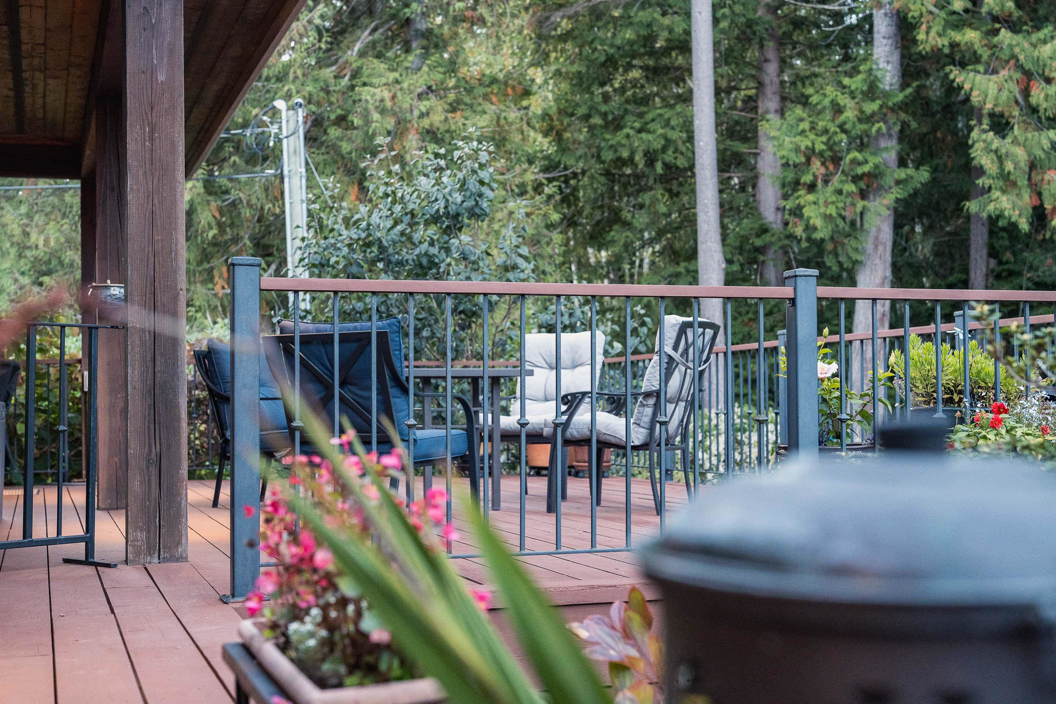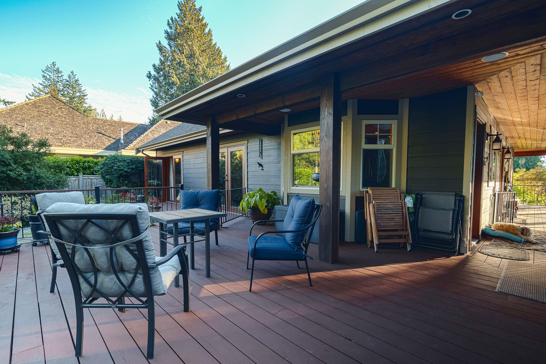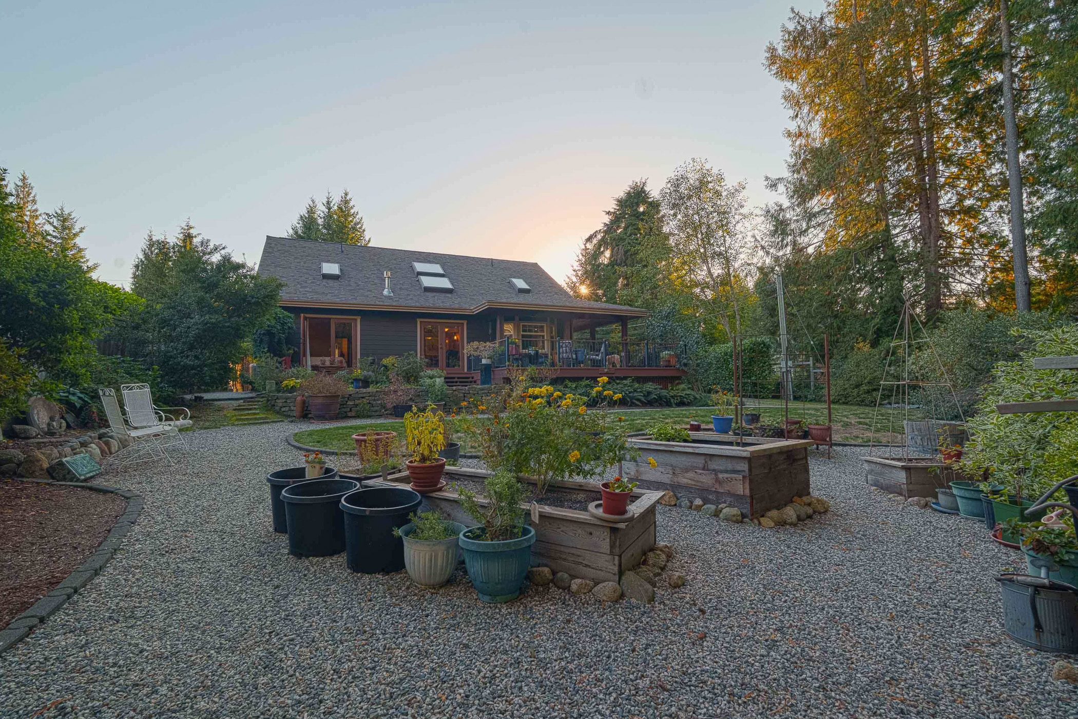 Custom-built 3 bedroom, 3 bathroom home on a beautifully landscaped half-acre in the heart of family-friendly Welcome Woods. Designed with exceptional craftsmanship and comfort in mind, featuring Brazilian cherry hardwood floors, rich fir trim, vaulted ceilings with custom ironwork, heated tile, and Merit wood cabinetry. The chef’s kitchen offers double wall ovens, a 5-burner gas cooktop, and solid wood cabinets. Cozy Valor gas fireplace, heat pump, on-demand hot water, central vacuum, and 200-amp service with backup panel. Enjoy seamless indoor-outdoor living on the 750 sq ft wrap-around covered deck surrounded by gardens, stone hardscapes, and fruit trees. Detached 768 sq ft, 3-bay garage / workshop with 2 piece bathroom, 10 ft ceilings, 200-amp service, and a 700 sq ft self-contained suite with maple flooring, open concept post and beam, and 2 skylights. Located on a quiet cul-de-sac close to school, public and school bus routes, beaches, trails, and local store.